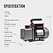 ✅SPECIFICATION: Flow Rate: 5.0 CFM, Ultimate Vacuum:80 Micron, 1/3HP AC Air Tool Rotary Vane ,Inlet Port: 1/4 Flare and 1/2 male, Voltage /Frequency: 110V/60Hz,Oil Capacity: 380 ml