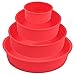 【ROUND CAKE PAN SET】 4 Pieces silicone baking set. Baking pan inner diameter 3 3/4inch, 6 1/8inch, 8 1/16inch, 9 7/16inch, each mould deep is 2 3/16inch.