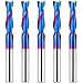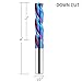 SOLID CARBIDE & NANO BLUE COATING: The down-cut spiral router bit is made of solid carbide. And Nano Blue Coating with high hardness and heat resistance enables the tool's cutting edge to retain crucial sharpness and lubricity. This provides longevity and produces cutting results of the highest quality. Clean surface, neat, no glitches. Up to 2.5X longer life compared to uncoated bits.