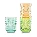 CUTE COLORFUL 2 OZ SHOTS - Each tiki shot glass is made of durable colored glass and holds 2 oz of your favorite liquor. The set of 3 comes in 3 different colors so everyone can keep track of their drinks. Get out the whiskey or mix up a novelty shot.