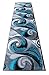 HIGH QUALITY AREA RUG – Masada Rugs carved by hand for a 3D look. Size: 32" x 10' long runner. Colors: Turquoise Grey Black.