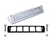 Measures 5-5/16 inches long by 2-1/4 inches wide at the ends by 5/8 inch , has two projections at top and one at bottom that enables it to snap in the Bargman porch light slots.