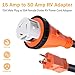 SUPER HEAVY DUTY - Rated at 125/250V 50A male plug, suitable for connection of 6AWG/3C+8AWG/1C RV cord, perfect replacement for the old or worn out plug of RV, Camper, Caravan, Motorhome, etc