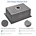 【Sound absorption】The single bowl sink original Anti-Noise technology with Thick heavy-duty coating and extra-thick rubber padding covering over 50% the sink to absorbs vibration and noise from dish washing and collision friction.