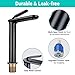 [Industrial Style Faucet]: Aquaterior Single Hole Bathroom Vessel Faucet in brushed matte black finish features clean lines & smoothly rounded edges, adding a chic, new look with an industrial appeal to your bathroom; Designed with a 8 1/2" high spout leaving plenty of space for handwashing (An elevated 8 1/2" height for above-mount basins), perfect for use in hotels, restaurants, shopping malls, and public places