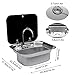 【Unique Design】 A set of equipment for sink faucet. Drop in sink drainer is designed to sit flush in RV countertops where space is limited. with a hinged filter plug, convenient for cutting vegetable, cooking, washing dishes. Hand sink stainless steel sink commercial kitchen sinks, small stainless prep sink, camp sink.