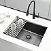 QUALITY MATERIAL: the small kitchen sink is made of premium T304 stainless steel with good strength and durability. The lifespan of the black stainless steel sink is long-lasting. Don’t worry the kitchen sink would get rusty.