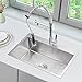 【Indestructible Material】 This 26-inch single bowl undermount kitchen sink is made of SUS304 stainless steel, The commercial grade T304 stainless steel with satin finish ensures that it is highly resistant to dirt and grime, easily wipes clean, and matches most kitchen appliances.