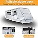 【Easy Installation & Portable】- 3 side zippers design, Rollable zippered door allows access to the RV doors and engine areas anytime, making it easy to view and check the internal situation. Furthermore, our camper cover includes one portable storage bag, 2pcs adhesive patches, and one tongue jack cover for convenient use.