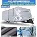 【Anti-aging & Waterproof】- Upgraded 2022 rv & trailer covers, the 450D top thick Oxford Cloth mixed with Anti-UV Composite and waterproof membrane, protect against rain, snow and scratches. Upgraded fabric is more durable, scratch-resistant, tear-proof, and against UV rays. More durable than products made of non-woven (water resistant 2000mm / anti-UV coating).