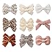 SET OF 24CUTE, STYLISH HAIR BOWS - 24pcs (12pairs) hair bow clips included to match any of your sweet girls' outfit. The assortment of beautiful girl hair clips includes leopard bows, pink, gray linen bows, vintage lace bows and brown leather bows,black velvet bows.