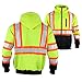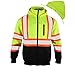 LIMITED EDITION SAFETY BOMBER JACKET - Premium high vis jacket featuring: (1) clear ID pocket, (2) front pockets & (1) chest pocket large enough to hold phone/tools, (1) arm pocket, (3) interior pockets, (1) hideaway hood & (1) heavy duty zipper to keep you warm day/night. This men's work jacket keeps you dry by withstanding light rain, wind & other weather. Insulated reflective jacket men includes adjustable elastic wrist cuffs allowing you to keep in warmth & move freely w/ a comfortable fit.