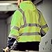 Weather Proof Safety Fleece Jacket - Lightweight safety jacket reflective built w/ a soft, synthetic, plush-quilted polyester exterior & interior. Thermal, high visibility jacket that is water resistant (NOT waterproof). Reflective yellow high visibility jacket best fitting size coats & durable zipper closure w/ pull tab. High visibility jacket w/ florescent contrast 2inch silver solid reflective safty coat tape reflective bands offer greater 360° enhanced visibility & mobility night/day.