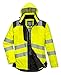 WEATHER PROOF SAFETY REFLECTIVE JACKET - Lightweight safety jacket reflective built w/ a soft synthetic exterior & an extra warm, insulated fleece interior. Thermal high visibility jacket that is water resistant (NOT waterproof). Reflective yellow high visibility jacket best fitting size coats & durable zipper closure w/ pull tab. High visibility jacket w/ florescent contrast 2" silver solid reflective safty coat tape reflective bands offer greater 360° enhanced visibility & mobility night/day.