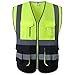 PREMIUM REFLECTIVE VESTS - Durable safety vest for men made of 100% polyester quality woven stitched hi vis neon bright fluorescent reflective vests for adults yellow safety vest mesh fabric w/ black side panels. Reflective safety vest best fitting size & durable zipper closure w/ pull tab. Hi visibility vests w/ two tone contrast stripe, 1 inch trim & 2 inch silver radian retro hi vis vest classic solid reflector tape reflective bands offer greater 360° enhanced visibility & mobility night/day.