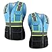 5 UNIQUE MULTI USE POCKETS | PREMIUM BREATHABLE MESH - Premium safety vest construction vest for men/chaleco seguridad that features 5 deluxe pockets: (2) large expandable hook & loop front pockets with strong closures & pull tabs, (1) front ID pocket, (1) phone pocket, (1) durable tool loop, (1) pen/laser/pencil pocket. Mens hiviz vest ppe vest with pockets with blue front polyester front panel design, blue piping trim & heavy duty zipper safety vest (zip up) closure with flourescent pull tab.