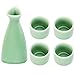 A 5-piece jade color ceramic tokkuri and ochoko set for serving Japanese Sake, Shochu, or Nihonshu