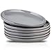 🍅EXTRA STRONG GLAZE HARD THAN METEL: Our glaze is extra strong to prevent scratches from your knives and forks. Please note dark marks may occur which are not scratches, but metal residue marks,because of the glaze surface harder than metal flatware.To remove metallic stains, you can use sponge and porcelain Power cleaner,Very easy to do that.The plates set is microwave,dishwasher and freezer safe.