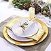 EXQUISITE DESIGN: Our beautiful dinner plates are designed with round rims accented with a fine gold mist border. The wide rims help prevent spills that may otherwise stain your tablecloth during meals. The classic design makes this a perfect product to complement any color scheme and table setting design