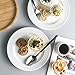 Versatile: 7 x 7 x 1 inch, perfect size for your everyday snacks, sides, breads, cheese, fruits, and crackers and more. Dress up or down with its ease and elegance of this classic white small plates set on any entertainments. These white round plates will be your best go to plate on any parties.