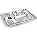 6 Sections Dinner Plate: 5 compartments to hold your food and snack separated with 1 compartment for your utensils. Included 4 pieces stainless steel rectangular divided plates tray, each measuring 15 x 10.6 x 0.98 inches, is an optimum size suitable for every meal, serving pasta, sandwich, dessert, salad, appetizer, snack, etc.