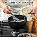 [Heat evenly and quickly] - enlarged induction base delivers rapid and evenly heat. Higher sidewalls prevents overflowing, ensures safe cooking. Suit all stovetop + induction.