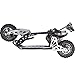 Looks like a Mongoose bike, but rides over all the stuff that inline skate wheel scooters can't. Includes 2 axle pegs in case you want to grind a side walk on the way to the park