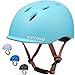 🎁【ADJUSTABLE FIT】: As your child grows, use the adjustable fit dial(turn right to tighten and left to loosen) on the helmet to keep the fit comfortable and their noggins safe while they cruise. After a day of riding, you can easily remove the detachable inner lining and wash away any sweat. The kids helmet fit system and additional pads are designed to grow with your child's head