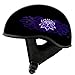 ✅ DOT Approved: Gloss Black Purple Bouquet graphic half helmet with a composite shell is a type of protective gear that meets and exceeds the Department of Transportation FMVSS 218 safety standard. It’s made with strong light weight material. It’s designed to provide high level protection to the rider in the event of a crash. Our helmet’s also have a thick EPS (expanded polystyrene) inner lining for comfort and added protection