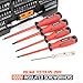 【MULTI-PURPOSE SIZES】: 146-piece Magnetic screwdriver set consists of 15 Conventional screwdriver, 4 insulated screwdriver, 12 Precision screwdriver, 9 Hex key, 9 Star key, 10 Nut Driver, 2 Offset Screwdriver, Voltage tester, Ratchet Handle, Magnetizer, Flexible Bar, Bit Holder, 20 Precision bits and 60 Screwdriver bits.