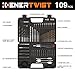 【What You Get】Full set includes 1*Ratchet Screwdriver,10*Nut Drivers,13*Titanium Drill Bits,13*2"Screwdriver Bits,50*1"Screwdriver Bits,3*Spade Drill Bits,1*Arbor Adaptor For Hole Saw,4*Hole Saws,6*Hss Black Oxide Twist Drill Bits,6*Masonry Drill Bits,1*Countersink,1*Bit Holder