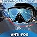 【Anti-leak & Anti-fog Technology】Three-Lens design with side windows reinforced tempered glass single lens with anti-fog treatment reduces fogging. Soft silicone edge fits face perfectly without any gap to let water leak in. Separate inhaling and exhaling channels stop the top snorkel mask from fogging up, and anti-fog coating on the lens and anti-fog inserts guarantees anti-fog effect.