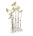 FEATURES FLORAL AND BOTANICAL SCULPTURE: The design concept features 8 vase-shaped sculptures made from metal bars welded together into a cluster, jutting metallic gold flower sculptures with rounded petals, stamen, and a petals made from metal mesh