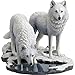 The figurine shows a pair of white wolves in winter
