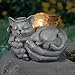 CAT MEMORIAL GARDEN STATUARY: Our cat statue solar garden decorations are a great way to provide a memorial marker and show sympathy for the loss of your departed pet; this cat garden figure depicts a peaceful angelic cat cradled in hands of love, resting in peace with solar glowing LED wings