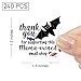 Size: about 1.8 inch for each thank you sticker, measured by hand.