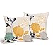 【Material】: Mustard yellow flowers throw pillow cases are made of high quality linen blend. Navy blue leaf throw pillowcases are comfortable, soft touch, light weight durable, grade A, high class.