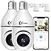 [Infrared Night Vision & High Quality Service] - 3MP HD light bulb camera shows you clear and smooth real-time video, entirely be free of graininess and blur. The wireless security camera supports infrared night vision, providing clear night vision images to keep your property safe. If you have any questions during installation and use, please feel free to contact our customer support.