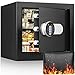 🔥【1.6 CUFT SMALL SAFE BOX FOR HOME USE】: Our home safe features 2 round live-locking bolts, seamless forming construction, and pry-resistant concealed hinges, provides long-lasting and reliable protection against forced entry. You use it to store firearm, medicines, jewellery, important documents, from robbers or intrusions. The digital safe keeps your valuables away from children and people you don't want to be disturbed.
