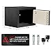 【2 Safe Opening Ways】The security safe has two unlocking ways. One is the manual control key + knob. Insert the key into the lock hole and turn it counterclockwise.Then turn the knob clockwise. The other is personal password / master password + knob (At the first time of opening, you can only open the safe box by the key / Don't leave the keys in the safe!)