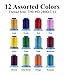 12 Assorted vibrant colors industrial sewing thread; High quality sewing thread for bags; Tex 70 nylon thread for hair weaving; T70 bonded nylon thread in bulk; 210 D nylon thread; 69 bonded nylon thread; 3600 yards assorted vibrant colors bonded nylon T70 thread