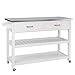 STORAGE SPACE: This kitchen island offers one drawer, an open slatted shelf, and one cabinet with two shelves for storing your items. The side of this cart also offers three shelves for extra organization.