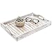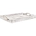 MEDIUM TRELLIS STYLE TRAY - Visually appealing with its handcrafted carvings, these elegant whitewash finish mango wood trays offer a distinct design while measuring an easy to carry 16 x 12 x 2.5-inches