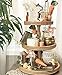 ✅Unique Design Tiered Tray Stand: Our tiered tray is made by high quality solid wood mixed with high density composite wood which is sturdy and durable. Improved metal stick ensures the stability to hold heavy things and not wobble. Three wood ball feet on the bottom-stable while protect your table from being scratched. Follow the assembling instruction in the package without tools within 2 minutes.