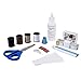 Includes scissors, tape, fabric glue, tape measure, marking pencils, thread, needles, needle threader, thimble, pins, safety pins and buttons