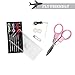 Includes a folding scissor, 6 pre-threaded needles with assorted color thread, 2 buttons and 1 safety pin