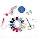 EVERYTHING YOU NEED IN ONE COMPACT KIT - Scissors, measuring tape, 24 rolls of thread, 30 needles, 8 small & large safety pins, 6 black & 6 white buttons, 2 needle threaders, 5 color pins, seam ripper, thimble, tweezers, needle holder, pencil and 1 yd elastic.