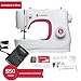 【Package Includes】The sewing machine comes with an English manual, 8 x thread spools , 1 x scissors, 10 x safety pins, 1 x needle threader, 1 x sewing needles, 1 x extension spindle and 1 x measuring tape.