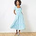 Misses' dress pattern features a smocked back, options for gathered puff sleeves and shoulder straps, midi and knee length variations and a ruffled hem