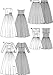 Includes sewing templates, fabric recommendations, pattern pieces, sizing guides, and English, Spanish, and French instructions for (4) dresses.